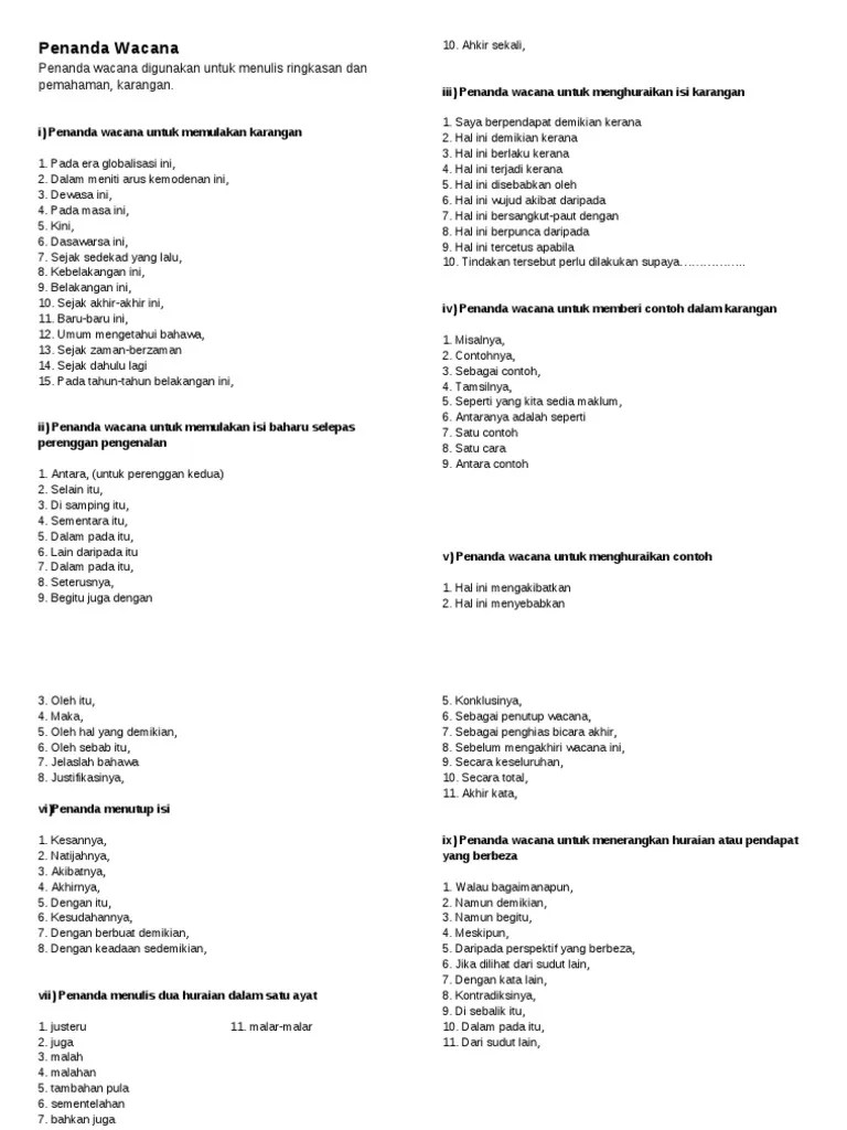 Okay, many people who learn english as their secondary language struggle to use penanda wacana (or discourse · cause and effect: · because, so, therefore, thus, . Discover short videos related to penanda wacana karangan english on tiktok. Wacana bahasa penanda inggeris dalam essay dalam. Top quality assignments all subjects our essay writing service is designed to get you the extra help you need in completing your next university . Penanda wacana bahasa inggeris google search essay writing skills. Again, also, and, and then, besides, equally. Penanda wacana for english essay writing. Bahasa indonesia teks prosedur struktur teks belajar buku pelajaran. Furthermore, in addition, not only this, apart from that, besides,. View penanda wacana dalam bi.docx from pendidikan 123 at the national university of malaysia. Topic penanda wacana in english . Penanda wacana bahasa inggeris google search essay writing skills essay tips essay writing. Penanda wacana / discourse markers contoh / examples: